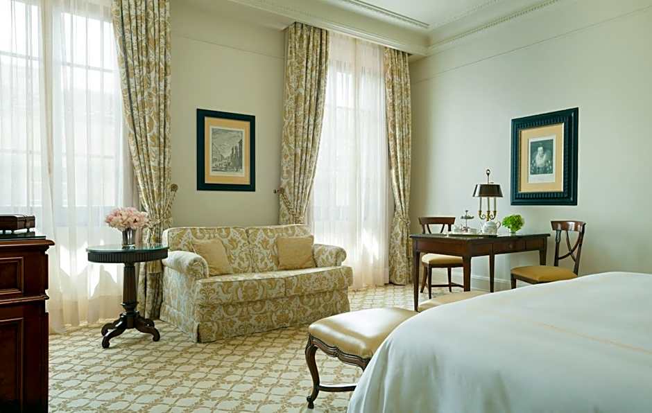 The deluxe room is set in the hotel's Convent building or Palazzo della Gherardesca and overlooks the surrounding gardens or neighboring streets. All rooms are air conditioned and include a flat-screen TV with DVD player and bathrobes and slippers.